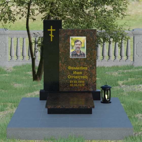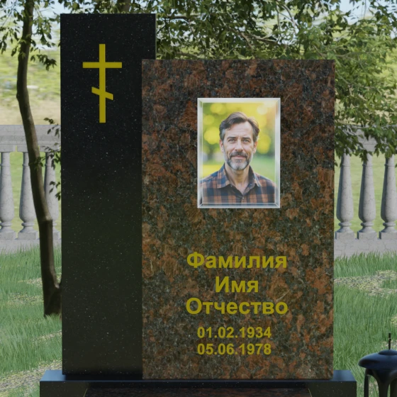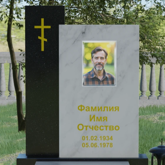 Кому подойдет: Благодаря своей строгой геометрии и асимметричному дизайну, этот памятник является универсальным и благородным решением. Лаконичность форм и отсутствие излишнего декора делают его идеальным для оформления мужского захоронения (отцу, мужу или брату), подчеркивая твердость и достоинство. В то же время, при использовании цветного гранита или светлого мрамора, модель прекрасно подойдет для женского или семейного мемориала. Это выбор тех, кто ищет баланс между традиционными символами веры и современной европейской архитектурой в ритуальном искусстве.