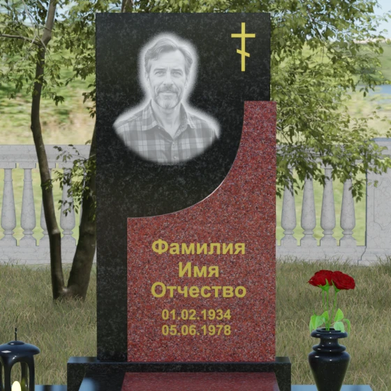 Модель Артикул 024 представляет собой законченное архитектурное решение. Стела установлена на массивный гранитный цоколь, который служит надежным фундаментом и придает всей конструкции необходимую устойчивость. Важной особенностью данного проекта является полное мощение участка: вместо открытого грунта используется сплошная надгробная плита. Это не только создает эстетически безупречный, аккуратный вид, но и значительно упрощает уход за местом захоронения, избавляя от необходимости борьбы с сорняками. В едином стиле с основным монументом выполнены дополнительные элементы декора: изящная каменная ваза, установленная на плите, позволяет приносить живые цветы, сохраняя гармонию композиции. Каменный бордюр по периметру участка четко очерчивает границы мемориала, превращая его в уединенное место для тихой молитвы и воспоминаний.
