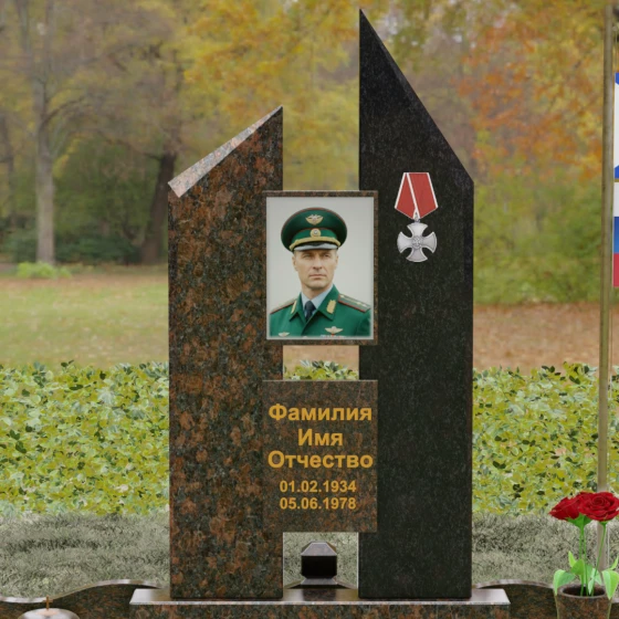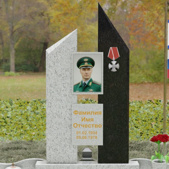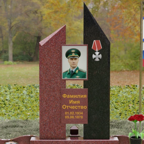 Увековечивание памяти — это не просто дань традиции, а создание монументального символа, способного пронести сквозь десятилетия историю личности, её подвигов и характера. Данная мемориальная композиция разработана как архитектурное воплощение стойкости и мужества, где каждая линия и грань камня подчеркивают значимость жизненного пути. Массивность конструкции и безупречная геометрия создают атмосферу торжественного покоя, превращая место захоронения в величественный мемориал, вызывающий глубокое уважение у каждого, кто приходит почтить память ушедшего.
