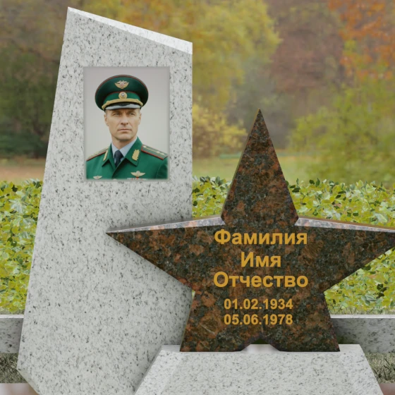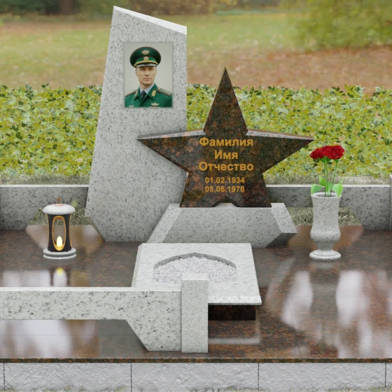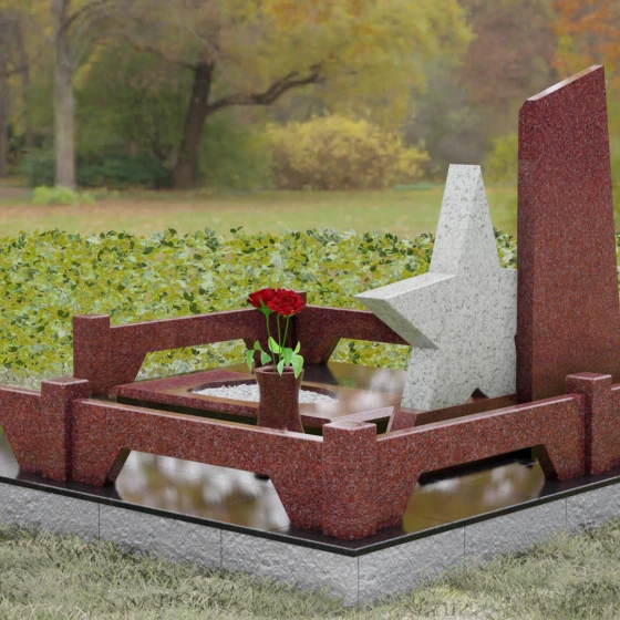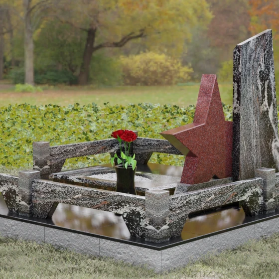 Кому подойдет: Это ритуальное изделие станет достойным выбором для увековечивания памяти военного, ветерана боевых действий или человека, чья профессиональная деятельность была связана с защитой Отечества. Символика звезды в сочетании со строгими линиями олицетворяет мужество, честь и верность идеалам. Благодаря своей величественной форме и архитектурной сложности, такой ансамбль подойдет для установки на почетном месте захоронения главы семьи, подчеркивая его высокий статус и значимость для потомков.