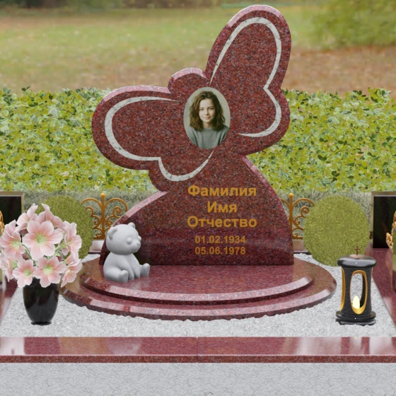 Кому подойдет: Данная модель является универсальным символом нежной привязанности и вечной души. Форма бабочки чаще всего выбирается для оформления захоронений молодых женщин, дочерей или сестер, подчеркивая их хрупкость, красоту и светлый след, оставленный в сердцах близких. В светлых тонах камня (например, в мраморе) изделие идеально подойдет для детского захоронения, символизируя чистоту ангельской души, а в темных гранитах станет величественным знаком памяти о яркой и неординарной творческой личности.