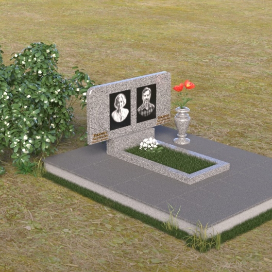 Этот ритуальное изделие – воплощение сдержанной элегантности и глубокого уважения. Прямоугольная стела с мягко скругленными углами создает ощущение завершенности и покоя. Верхняя часть памятника, словно рамка для воспоминаний, украшена выгравированными портретами. Полированная поверхность камня, подобно зеркалу, отражает свет, создавая игру бликов и теней, что придает глубину и объем изображениям. Горизонтальная плита под портретами добавляет композиции устойчивости и визуально расширяет пространство. Все элементы памятника объединены лаконичным дизайном, который говорит о достоинстве и вечной памяти.
