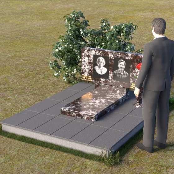 Форма стелы этого ритуального изделия идеально подходит для размещения двух портретов. Композиция с двумя изображениями, выполненными в технике гравировки, выглядит гармонично и сбалансированно. Под портретами можно расположить надпись с именем, датами жизни и короткой эпитафией. Золотое тиснение букв на черном граните создает эффект контраста и придает тексту дополнительную выразительность. Небольшая тумба, расположенная под стелой, служит подставкой для плиты с именами и годами жизни. Рядом с памятником можно установить вазу для цветов, выполненную в том же стиле и из того же материала, что и сам памятник. Это создаст единый ансамбль и подчеркнет целостность композиции. Дополнительно можно установить лампаду или небольшой фонарь, которые будут освещать памятник в темное время суток, создавая атмосферу умиротворения и светлой памяти.