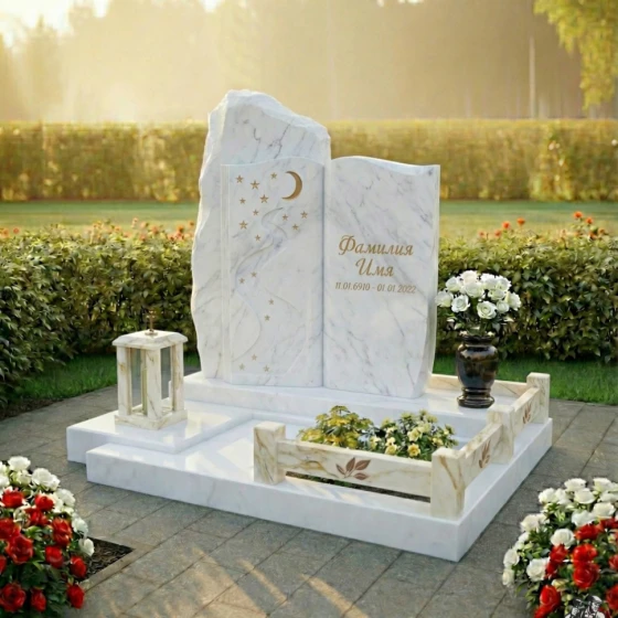 • Уход: Полностью закрытая надгробная плита и полированные поверхности значительно упрощают уход за памятником. Достаточно периодически протирать его влажной тканью, чтобы сохранить чистоту и блеск камня. Отсутствие открытого грунта исключает рост сорняков и необходимость в постоянном уходе за растительностью.
