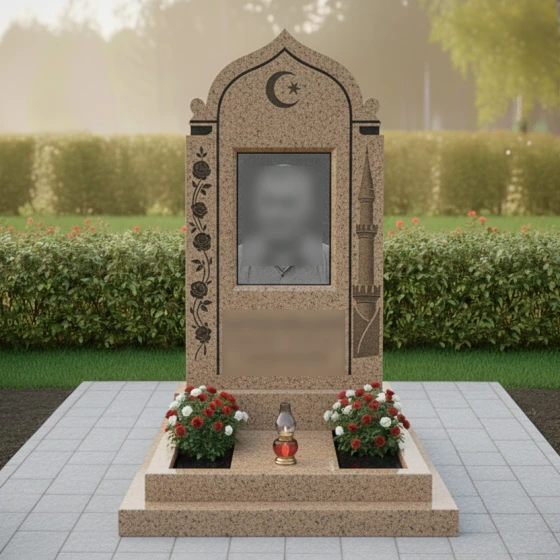 Кому подойдет: Данная модель является универсальным решением для оформления женского или семейного захоронения в мусульманской традиции. Благодаря сочетанию флористических мотивов (розы) и религиозной символики, она идеально подходит для выражения любви и глубокого уважения к матери, супруге или дочери. Это выбор тех, кто ценит эстетическую завершенность, надежность конструкции и желает увековечить память о близком человеке в форме, лишенной суеты и случайных деталей.