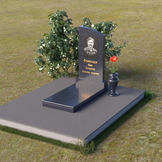 Взгляд невольно приковывает стела, выполненная в форме элегантной арки. Ее верхняя часть, скругленная мягким полумесяцем, словно устремляется ввысь, символизируя духовность и надежду. Лицевая поверхность стелы отполирована до зеркального блеска, отражая свет и создавая ощущение глубины. На ней искусно выгравирован портрет, выполненный с высокой детализацией, позволяя сохранить образ дорогого человека. Ниже располагается надпись, выполненная золотыми буквами, которые ярко выделяются на фоне черного гранита, словно светлые воспоминания, пробивающиеся сквозь время.