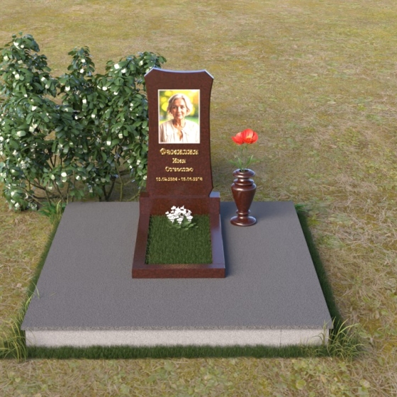 Форма стелы ПВ 020 идеально подходит для размещения портрета усопшего. Благодаря скругленным линиям и отсутствию острых углов, изображение будет выглядеть гармонично и естественно. Портрет может быть выполнен в виде гравировки или фотокерамики. Золотое тиснение имени, отчества и дат жизни на темном фоне гранита выглядит особенно торжественно и благородно, привлекая взгляд и подчеркивая важность информации. Для того, чтобы добавить индивидуальности, можно дополнить композицию вазой для цветов, выполненной в том же стиле, что и сам памятник. Ваза из гранита или мрамора не только украсит место захоронения, но и станет символом вашей заботы и любви. Расположение вазы рядом со стелой позволит создать завершенную и гармоничную композицию, подчеркивающую красоту и величие ритуального изделия.